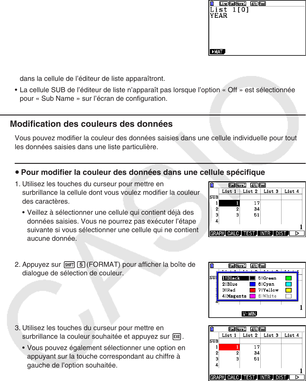 • La cellule SUB de l’éditeur de liste n’apparaît pas lorsque l’option « Off » est sélectionnée