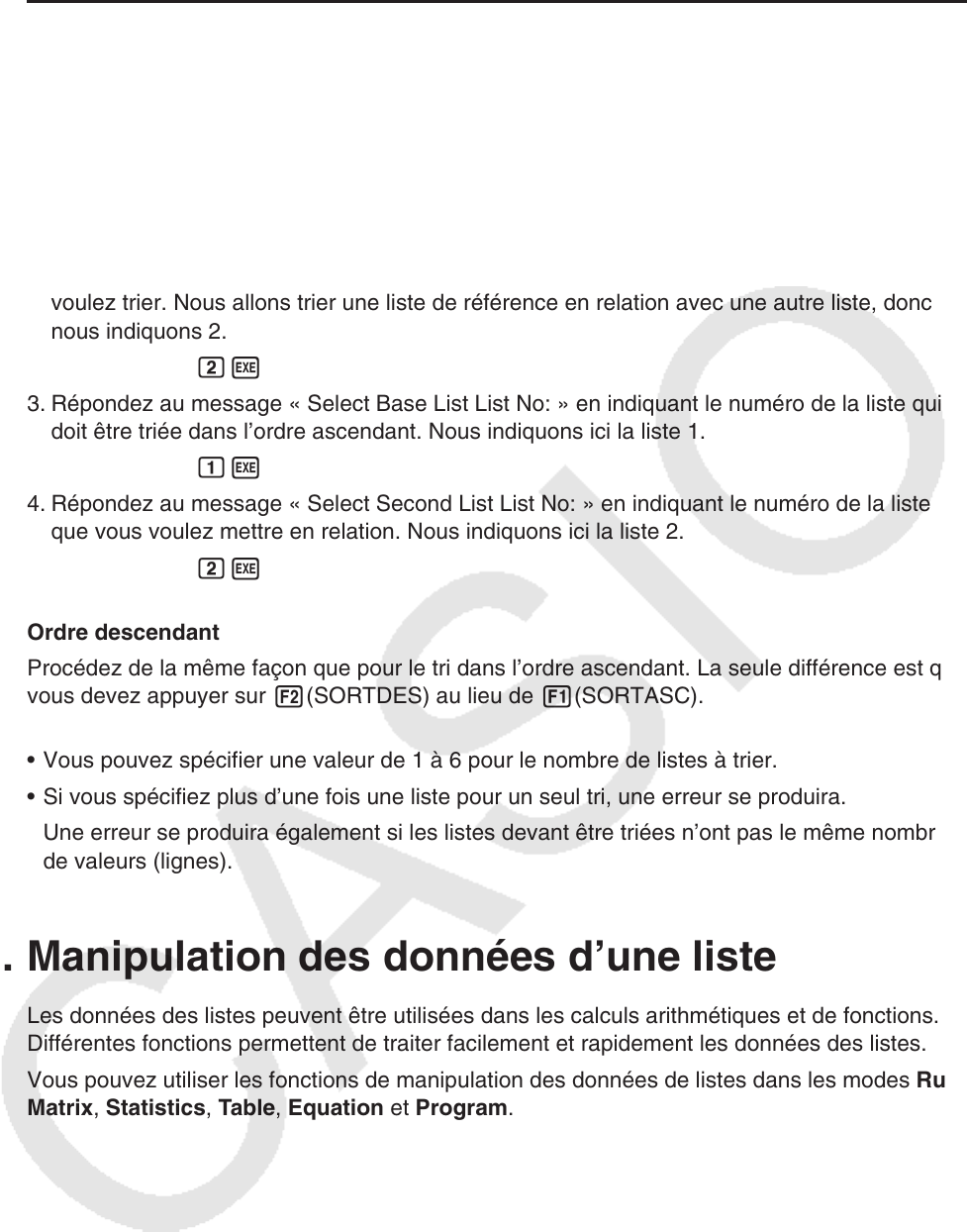 vous devez appuyer sur 2(SORTDES) au lieu de 1(SORTASC).