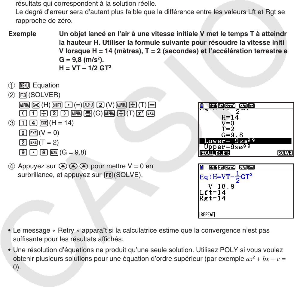 • Le message « Retry » apparaît si la calculatrice estime que la convergence n’est pas