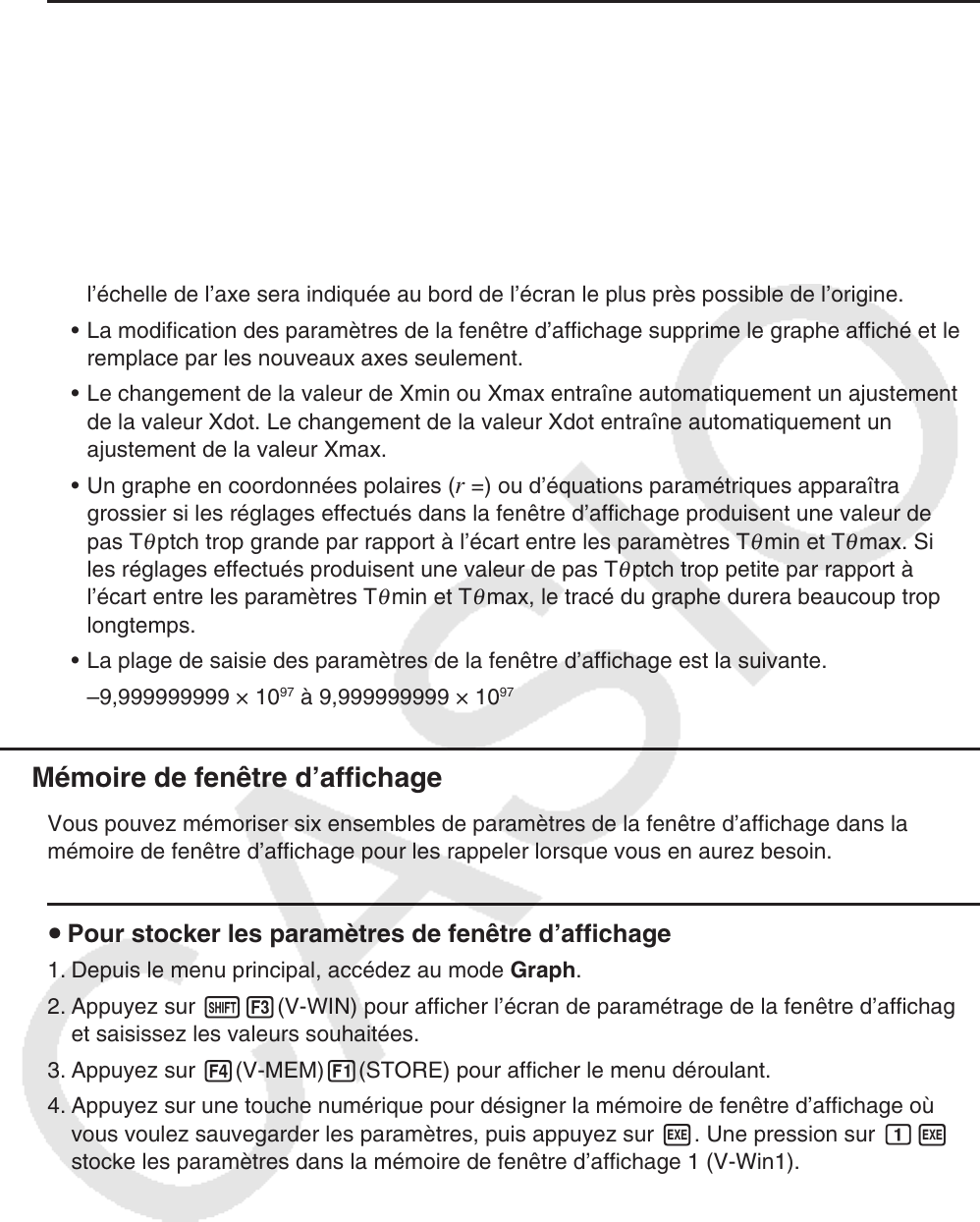 • La modification des paramètres de la fenêtre d’affichage supprime le graphe affiché et le
