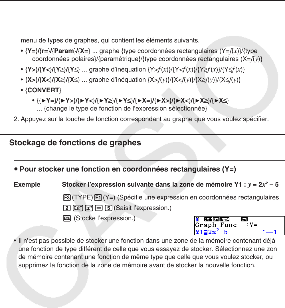 u Pour stocker une fonction en coordonnées rectangulaires (Y=)