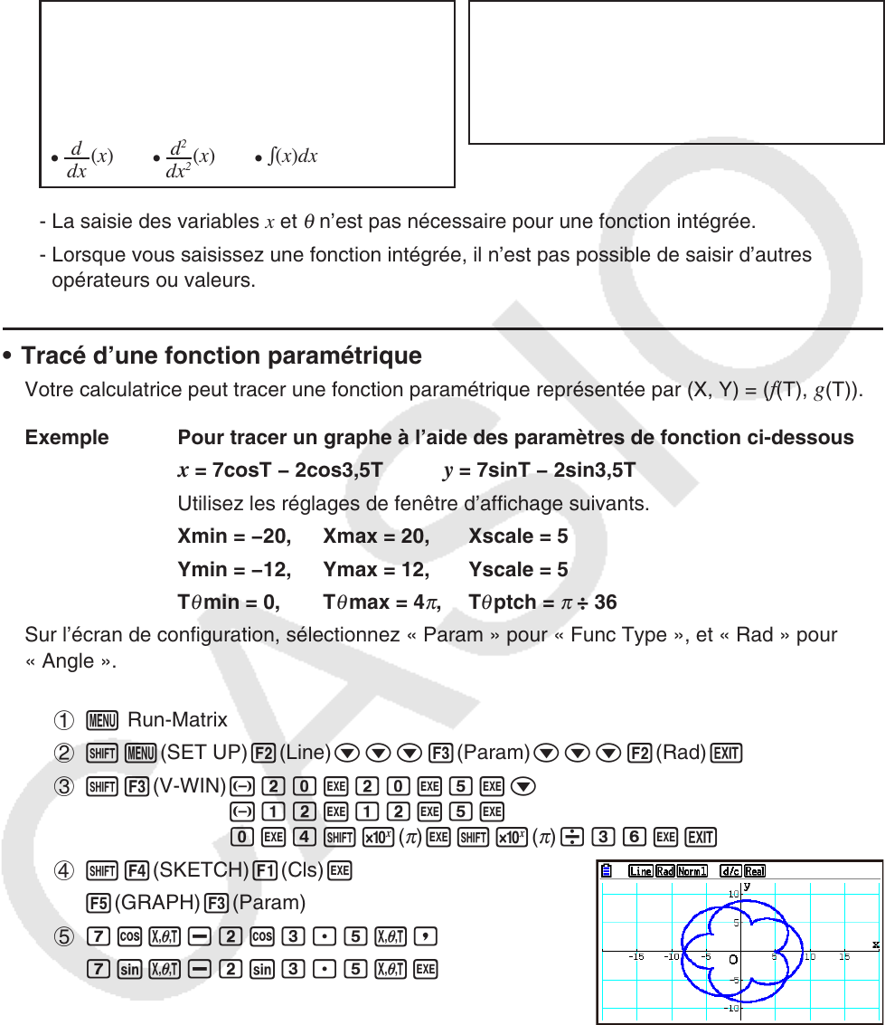 - Lorsque vous saisissez une fonction intégrée, il n’est pas possible de saisir d’autres