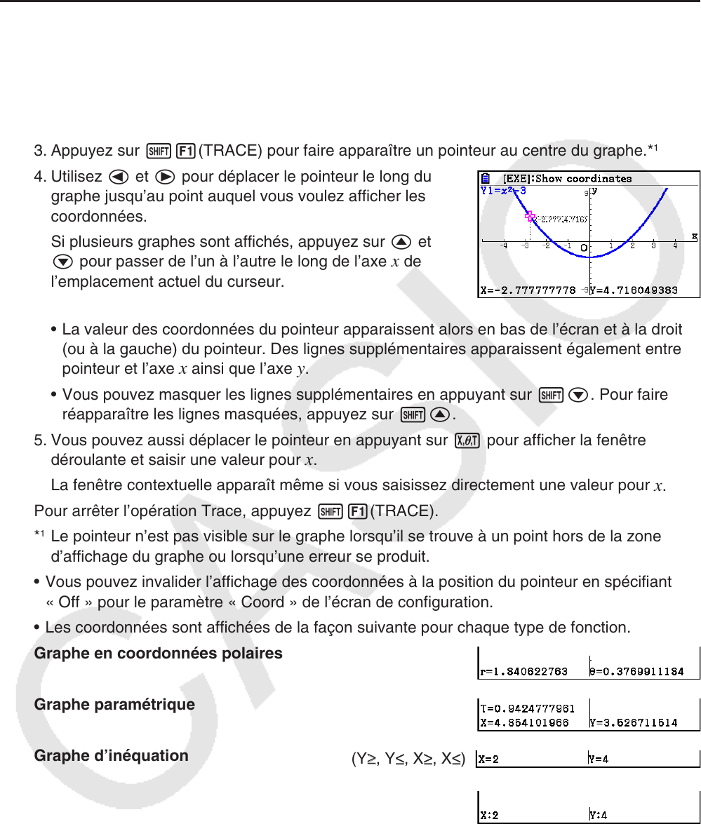 La fonction Trace permet de déplacer un pointeur sur un graphe et de lire les coordonnées à
