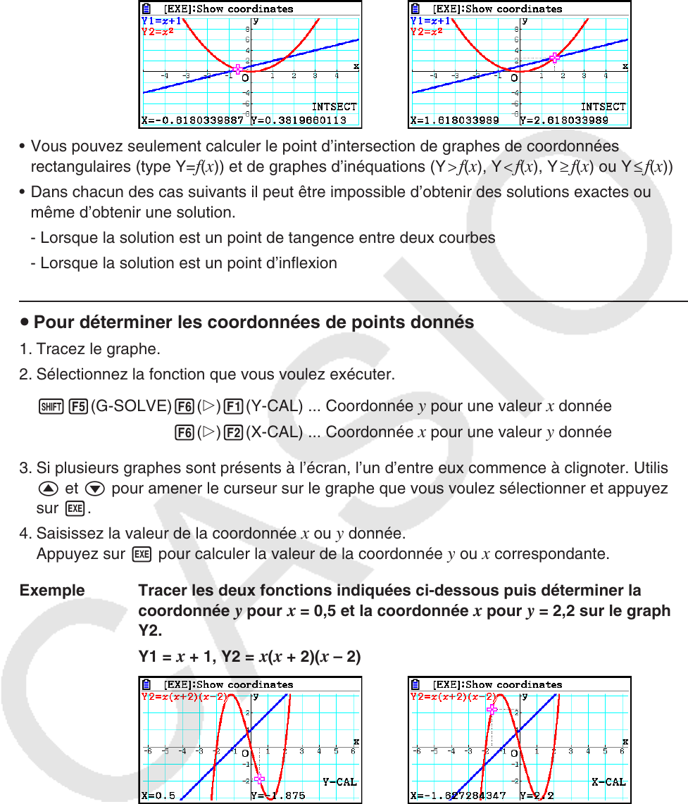 • Vous pouvez seulement calculer le point d’intersection de graphes de coordonnées