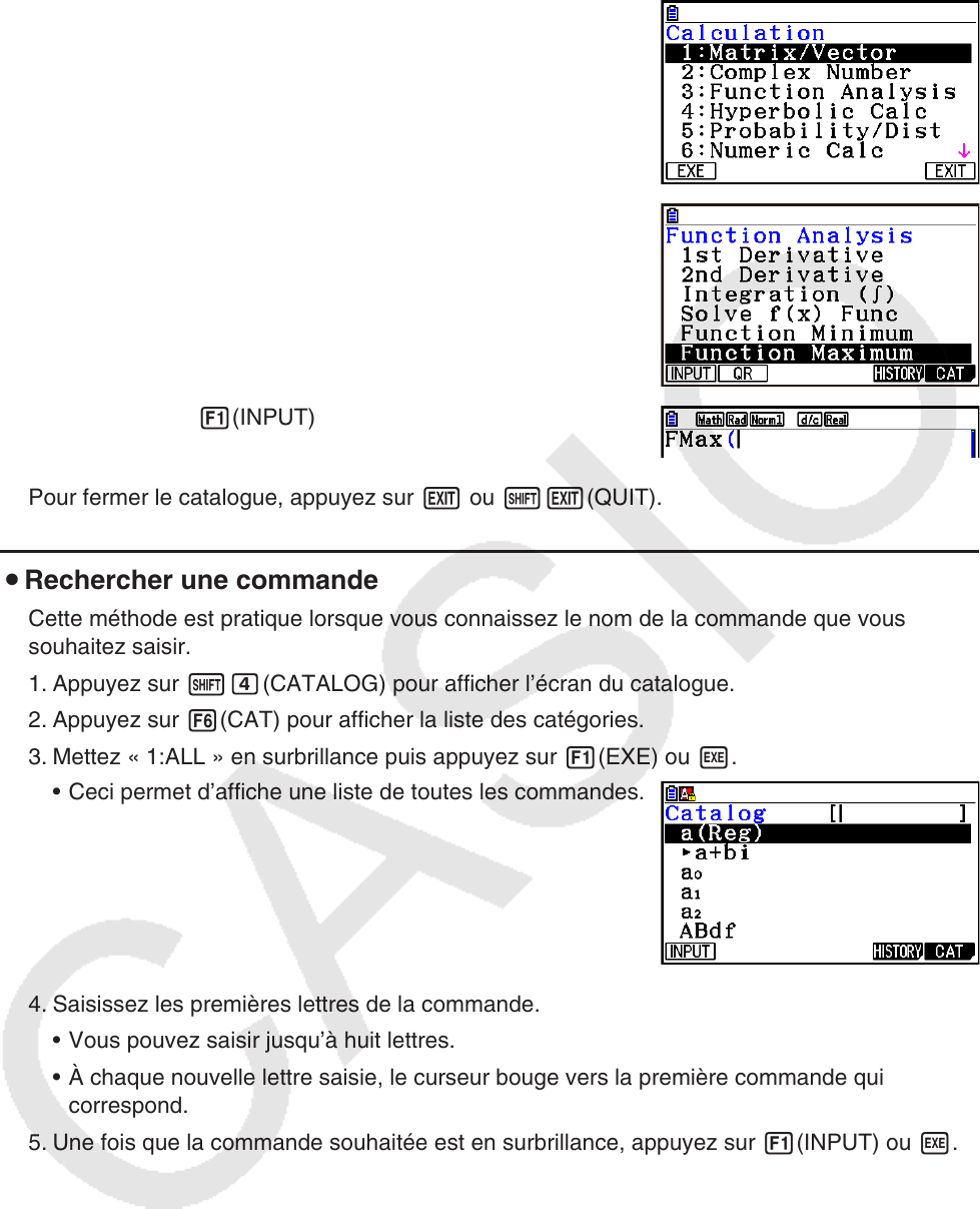 Exemple :  Pour saisir la commande « FMax( », qui détermine un valeur maximale