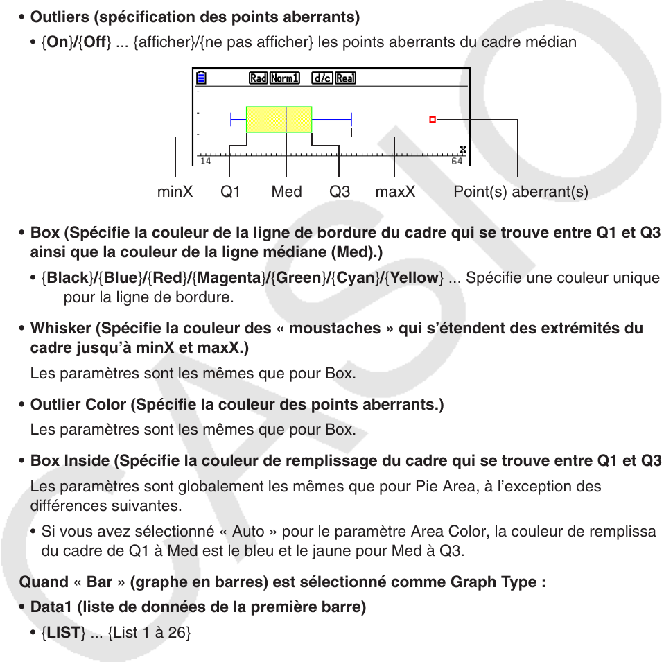Quand « MedBox » (cadre médian) est sélectionné comme Graph Type :