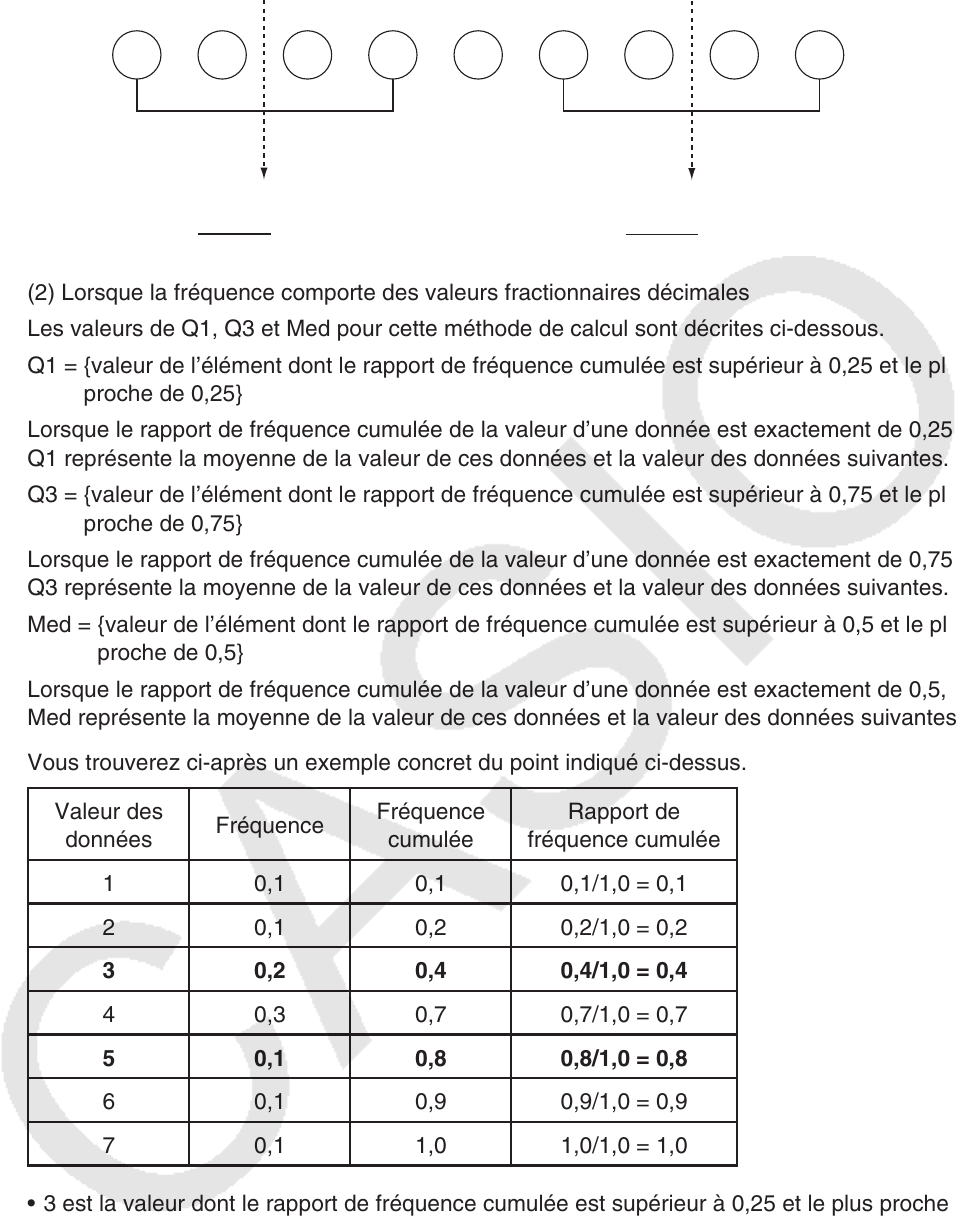 • 3 est la valeur dont le rapport de fréquence cumulée est supérieur à 0,25 et le plus proche