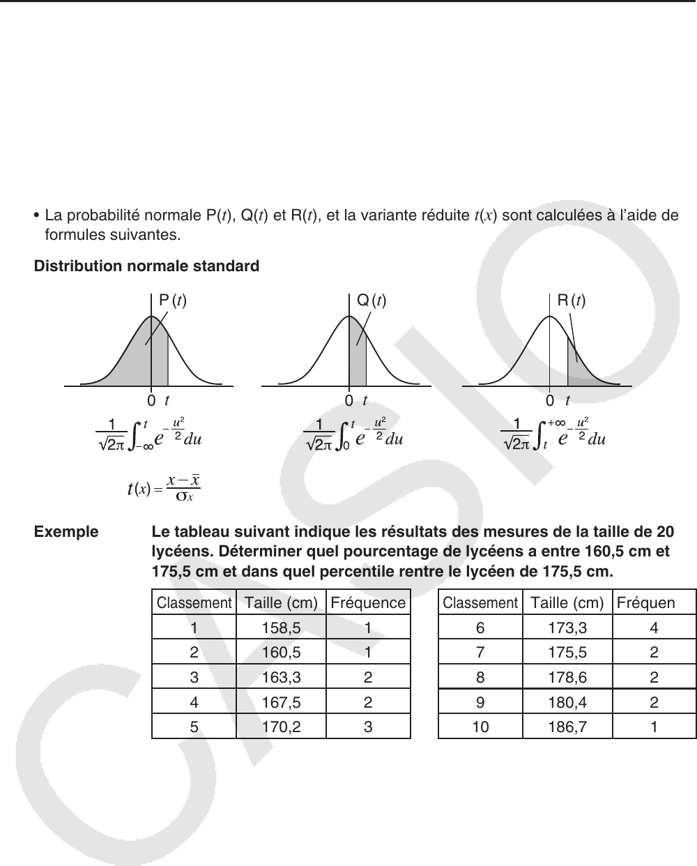 • { P( } / { Q( } / { R( } ... obtient la valeur de la probabilité normale {P(