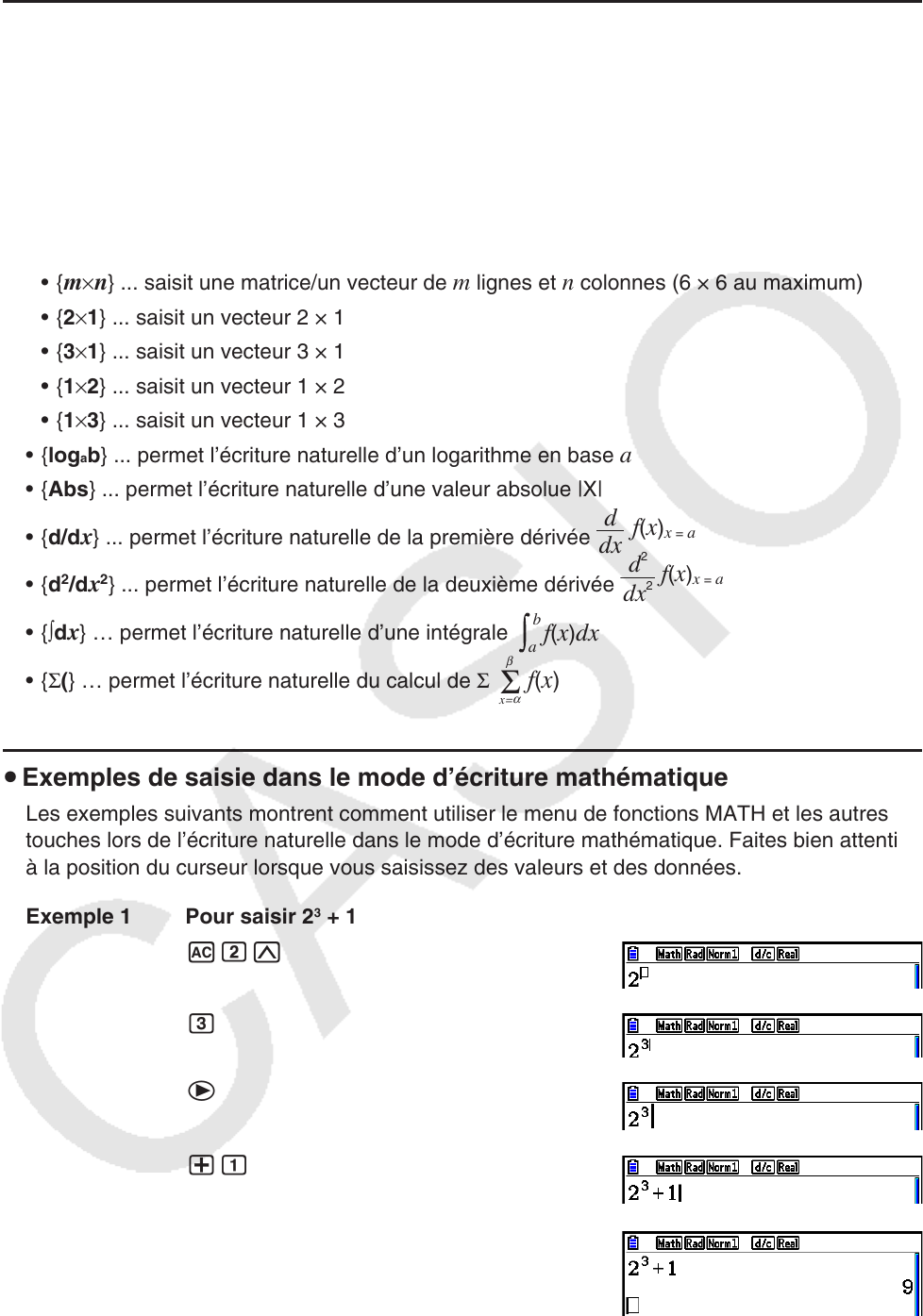 - 8. Tableau de conversion des commandes spéciales de la calculatrice scientifique CASIO <=> Texte