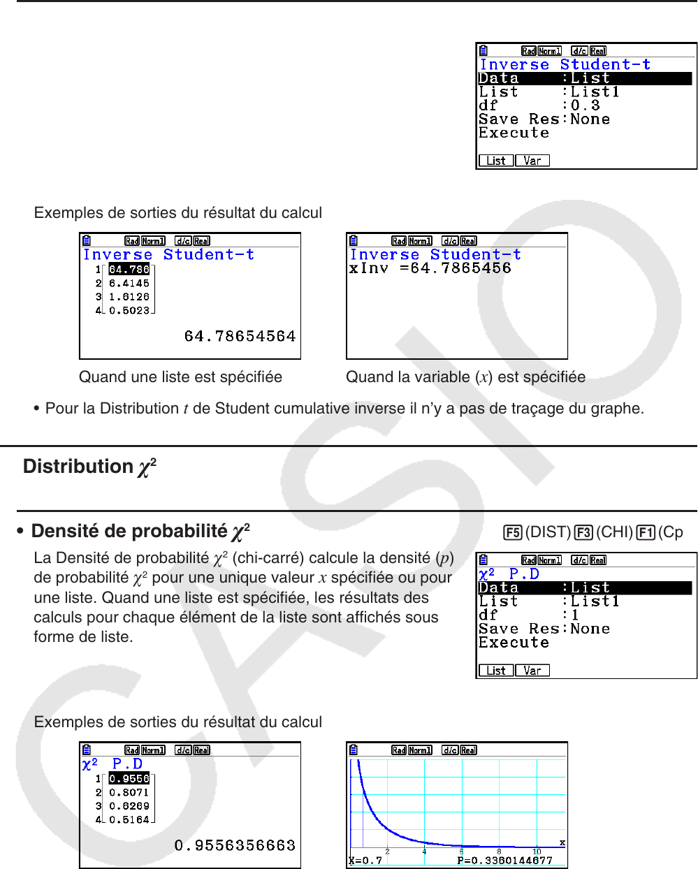 • Pour la Distribution t de Student cumulative inverse il n’y a pas de traçage du graphe.