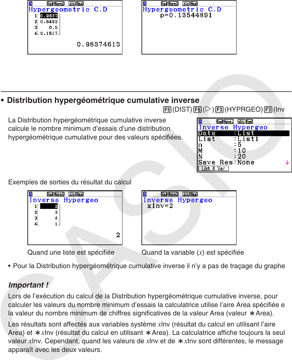 • Pour la Distribution hypergéométrique cumulative inverse il n’y a pas de traçage du graphe.