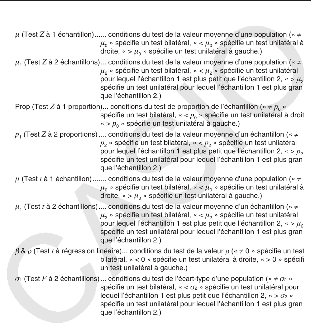 bilatéral, « < 0 » spécifie un test unilatéral à droite, « > 0 » spécifie