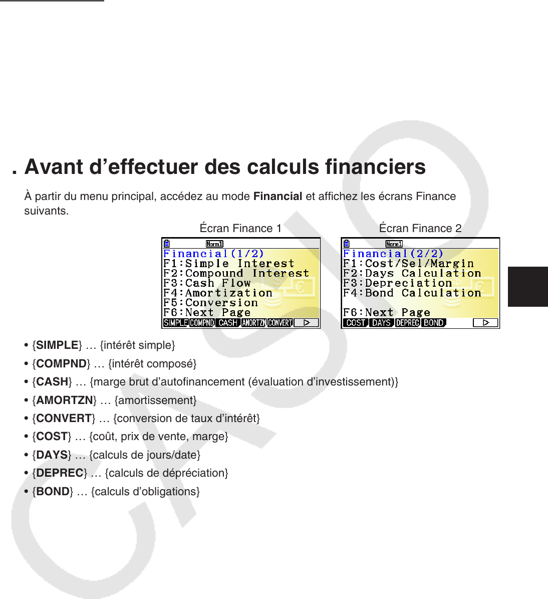 1. Avant d’effectuer des calculs financiers