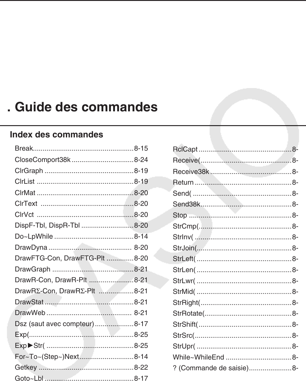 - 8. Tableau de conversion des commandes spéciales de la calculatrice scientifique CASIO <=> Texte