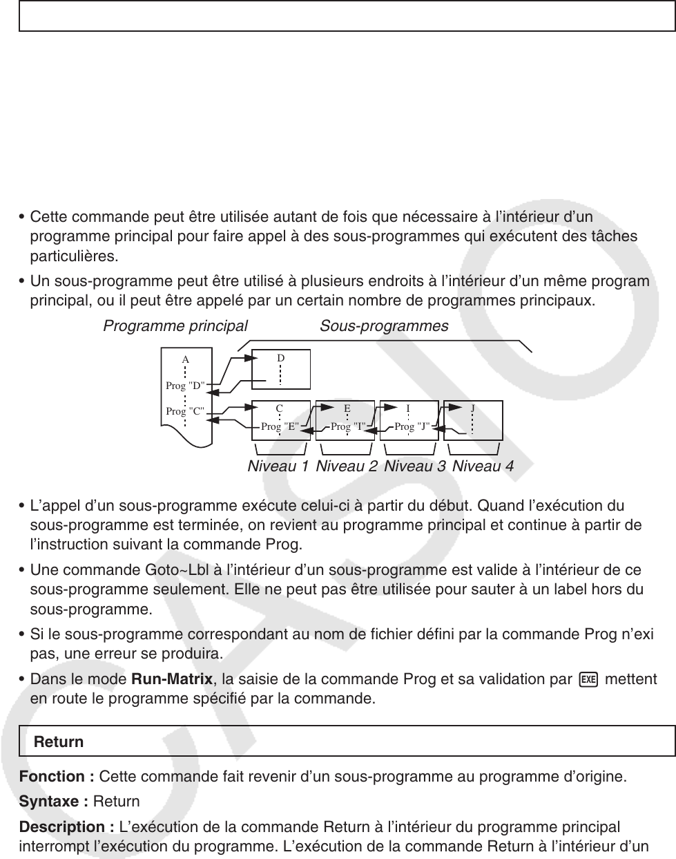 • Une commande Goto~Lbl à l’intérieur d’un sous-programme est valide à l’intérieur de ce