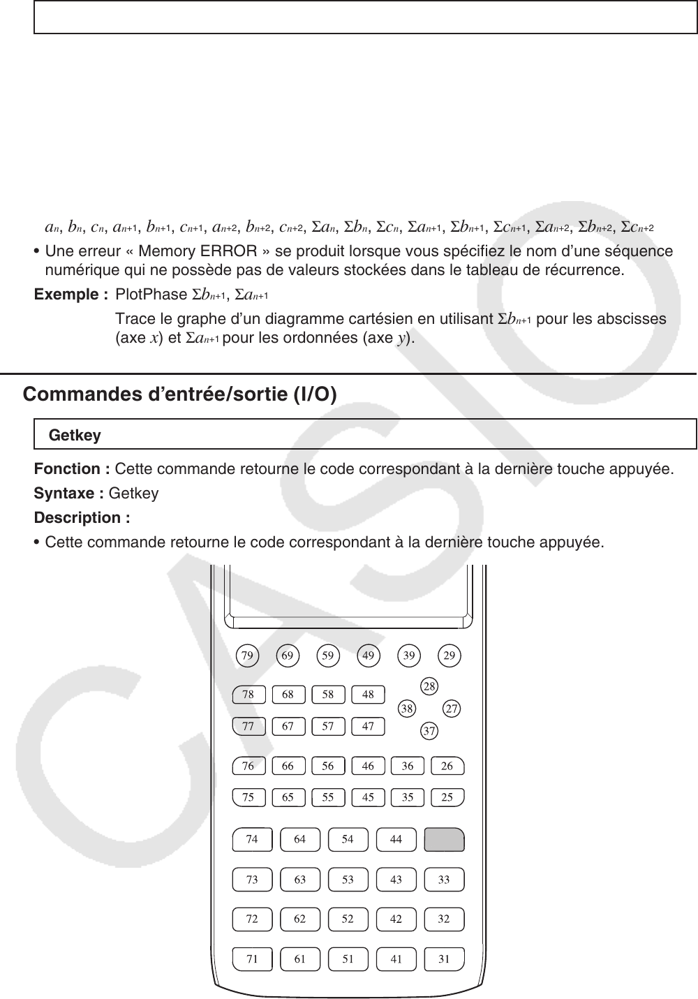- 8. Tableau de conversion des commandes spéciales de la calculatrice scientifique CASIO <=> Texte