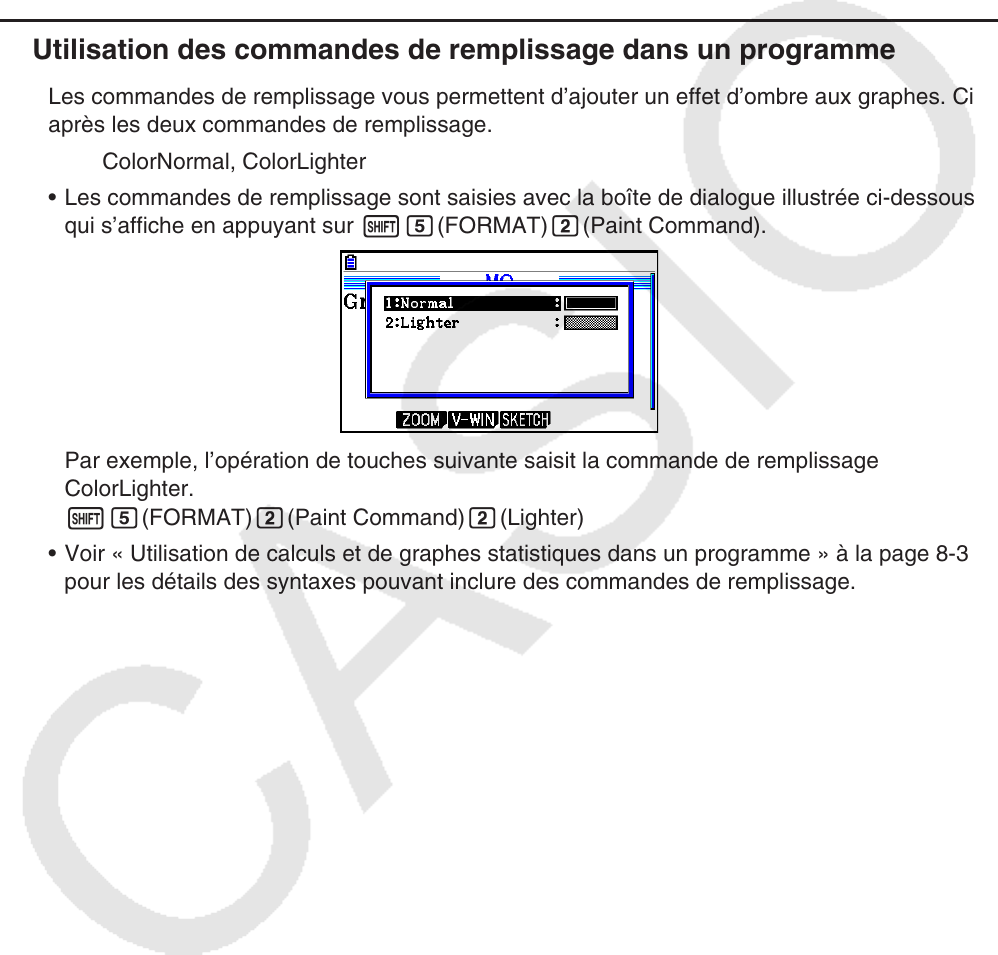 en utilisant les fonctions du mode Graph ou du mode Statistics dans un programme. Voir