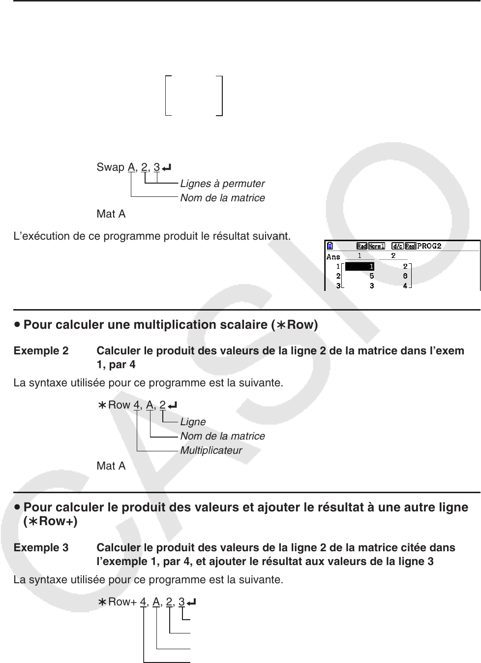 Exemple 1  Permuter les valeurs de la ligne 2 et de la ligne 3 dans la matrice