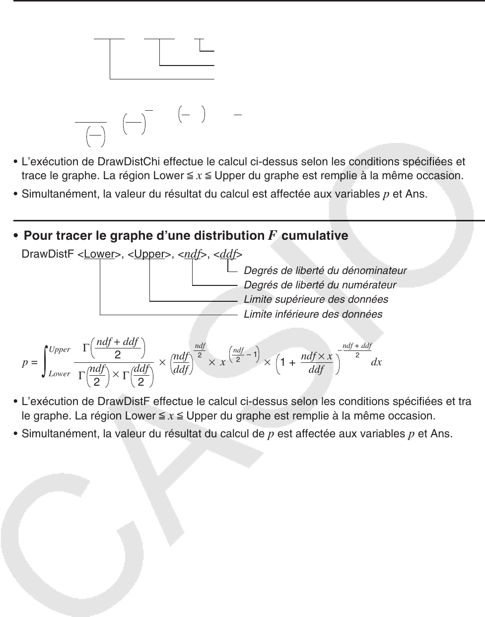 • L’exécution de DrawDistChi effectue le calcul ci-dessus selon les conditions spécifiées et