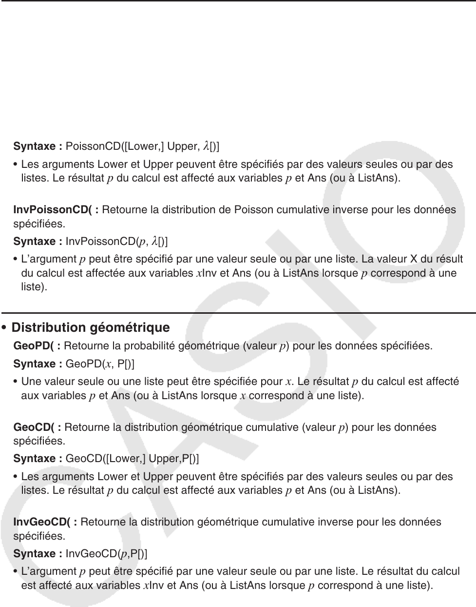 - 8. Tableau de conversion des commandes spéciales de la calculatrice scientifique CASIO <=> Texte