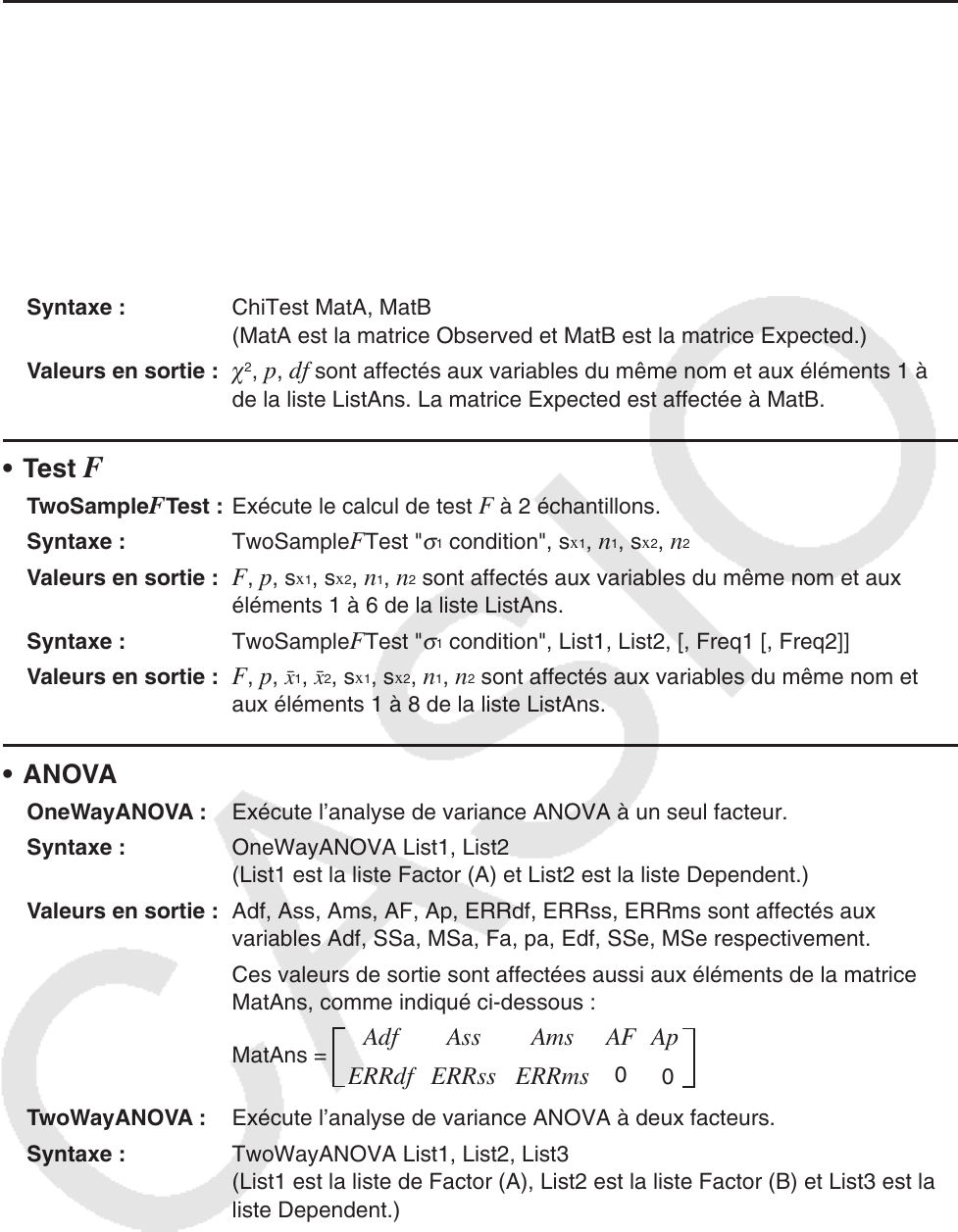- 8. Tableau de conversion des commandes spéciales de la calculatrice scientifique CASIO <=> Texte