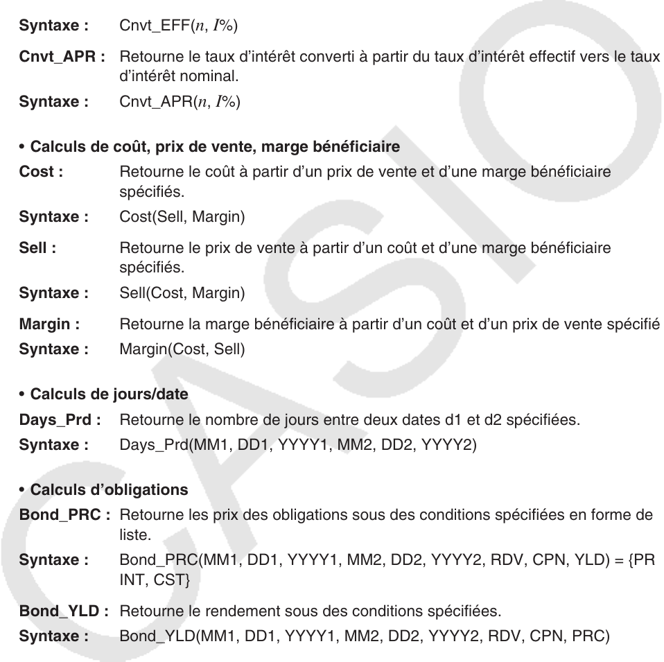 • Calculs d’obligations
