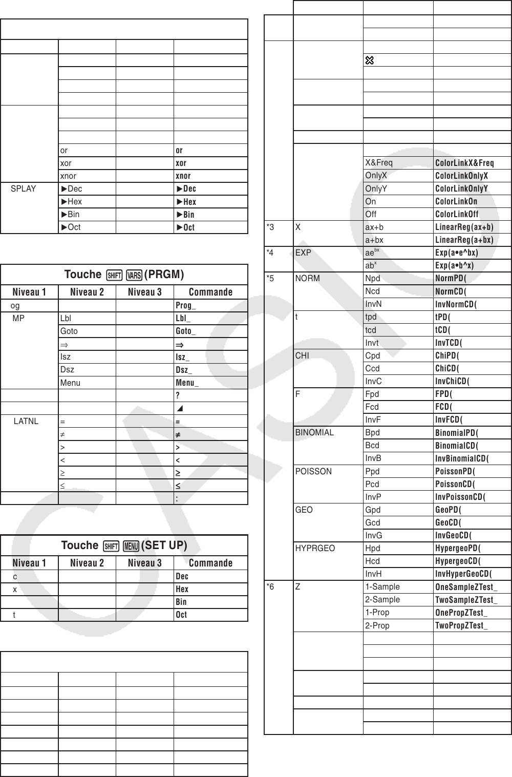 - 8. Tableau de conversion des commandes spéciales de la calculatrice scientifique CASIO <=> Texte