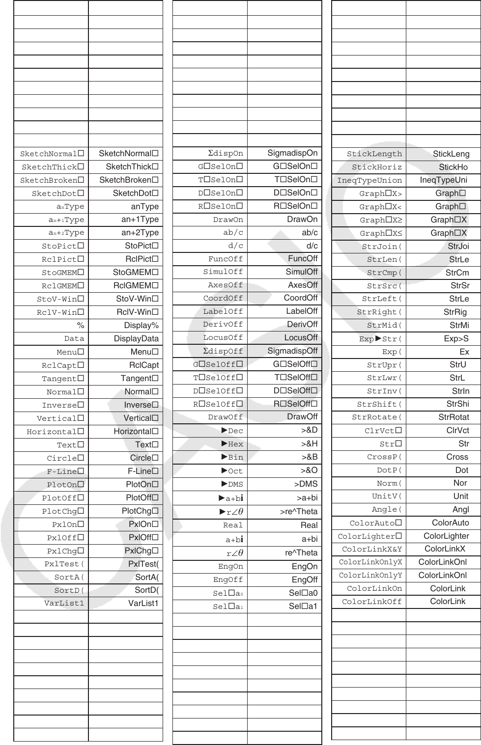 - 8. Tableau de conversion des commandes spéciales de la calculatrice scientifique CASIO <=> Texte