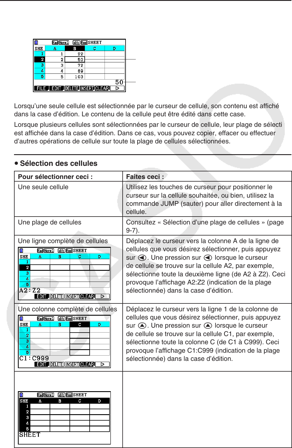 les cellules de la feuille de calcul et l’affichage de son