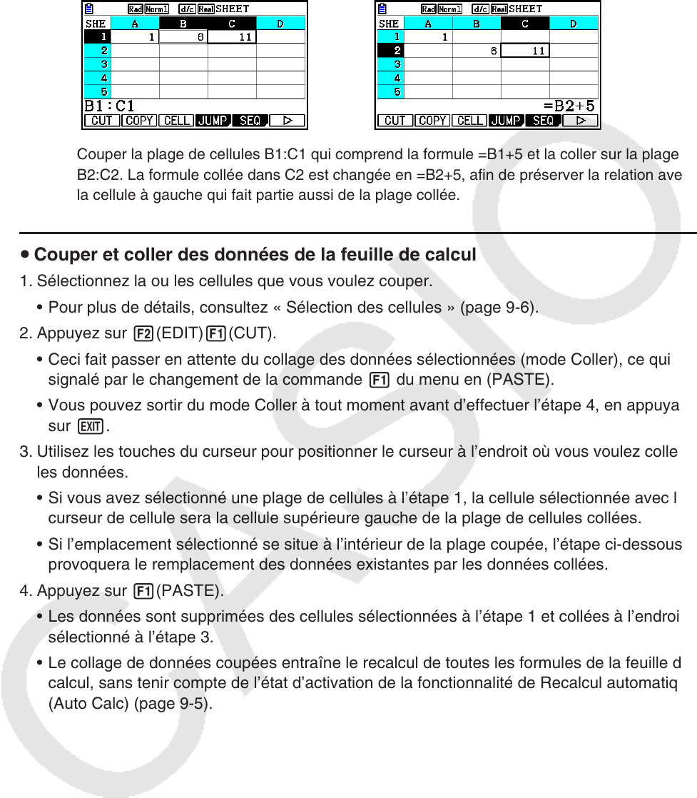 • Le collage de données coupées entraîne le recalcul de toutes les formules de la feuille de