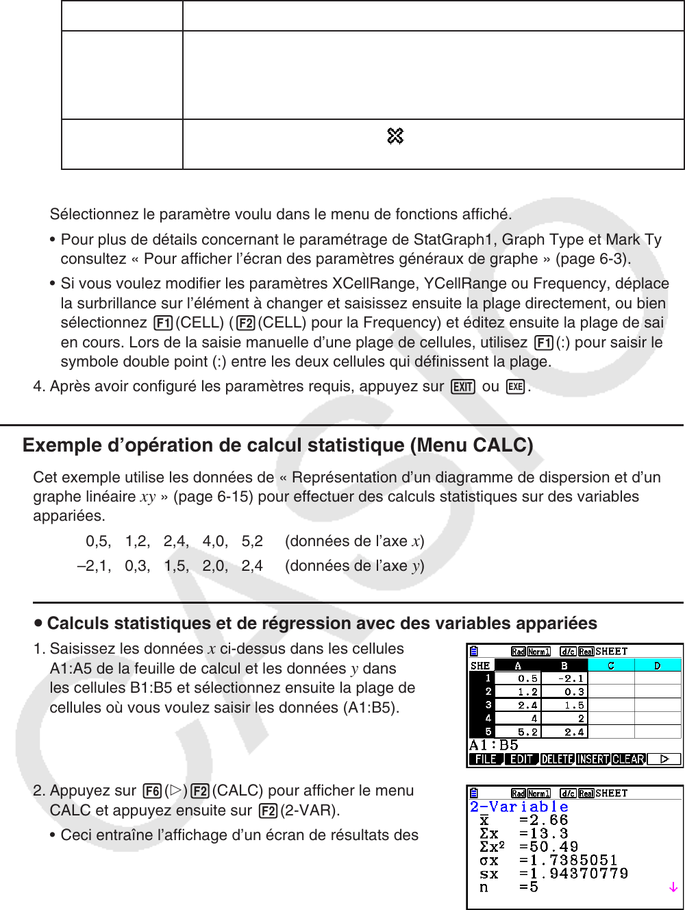 k Exemple d’opération de calcul statistique (Menu CALC)