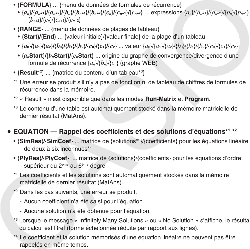 - 8. Tableau de conversion des commandes spéciales de la calculatrice scientifique CASIO <=> Texte
