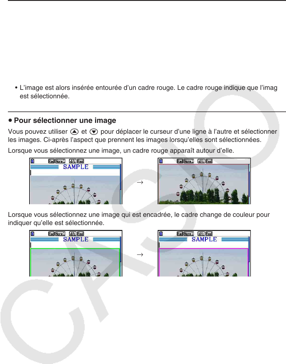 les images. Ci-après l’aspect que prennent les images lorsqu’elles sont sélectionnées.