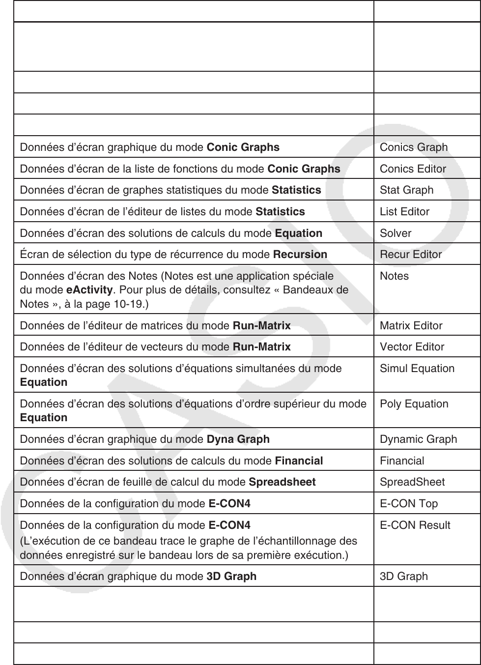 - 8. Tableau de conversion des commandes spéciales de la calculatrice scientifique CASIO <=> Texte