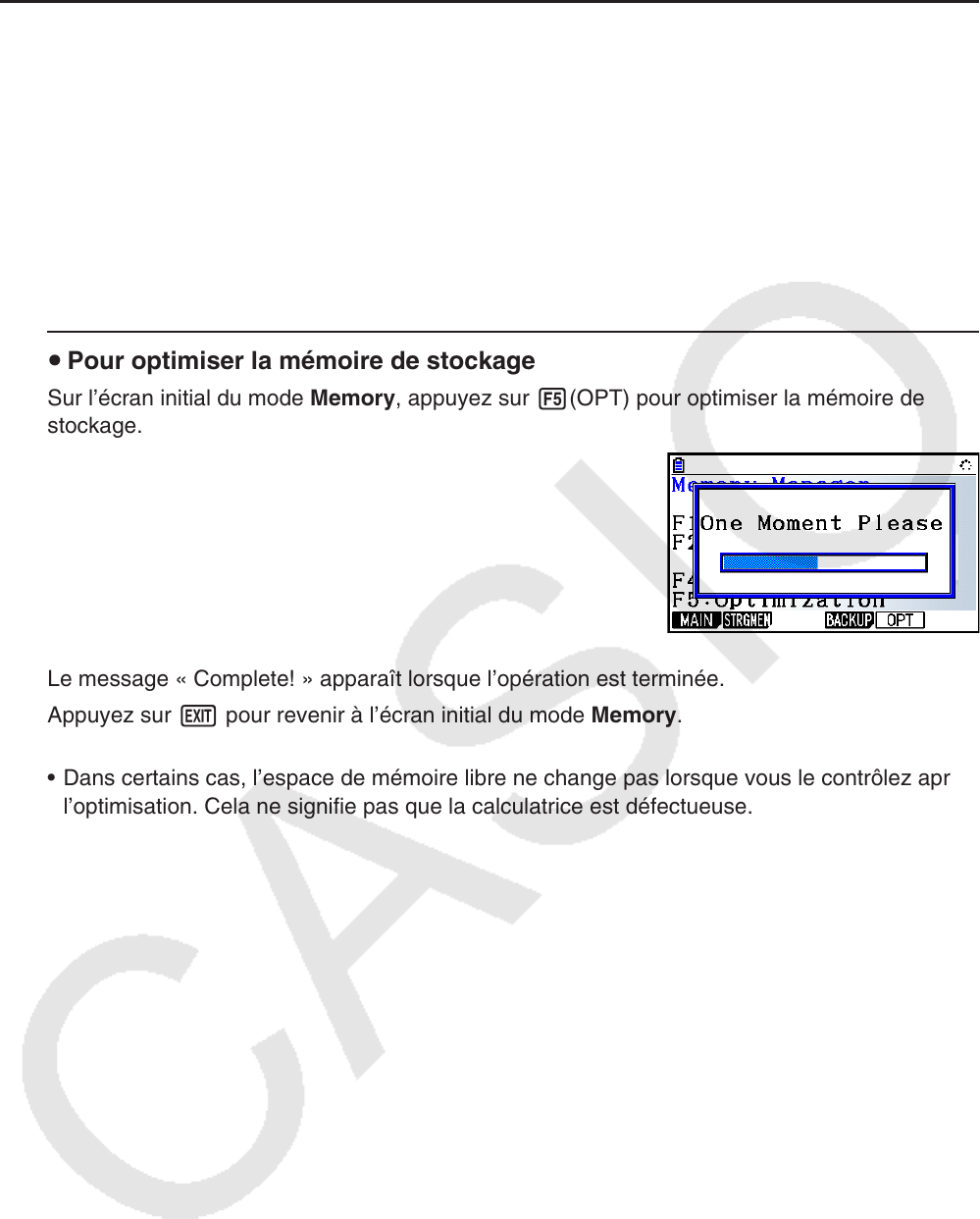 • Notez que la calculatrice effectue automatiquement une optimisation de la mémoire de
