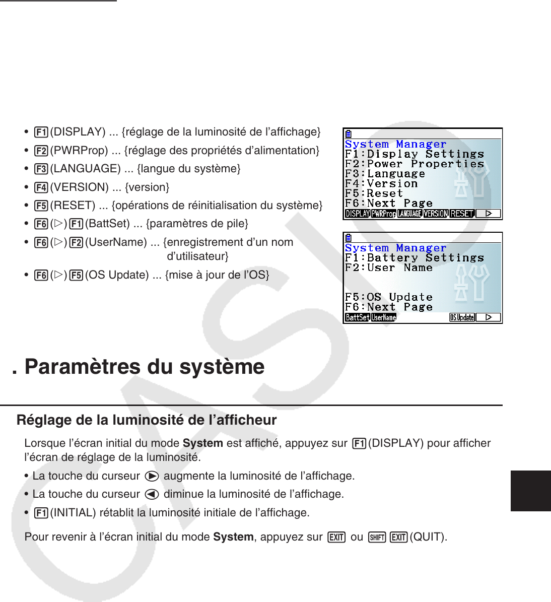 Pour revenir à l’écran initial du mode System, appuyez sur J ou !J(QUIT).
