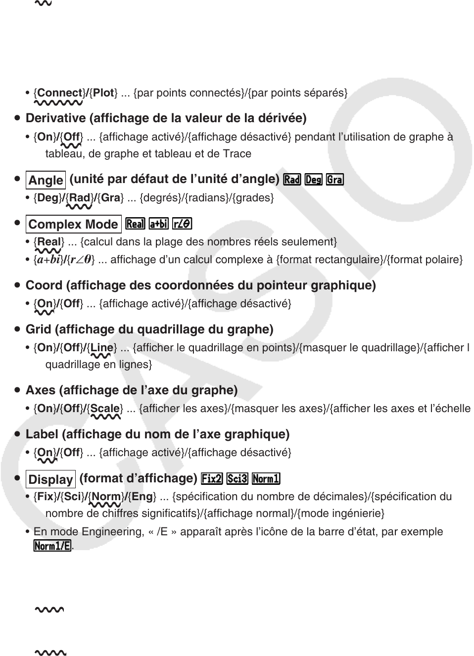 • { On } / { Off } ... {affichage activé}/{affichage désactivé} pendant l’utilisation de graphe à