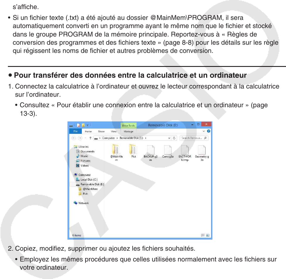 • Si le dossier @MainMem contient un fichier additionnel (.g3a/.g3l), celui-ci sera déplacé