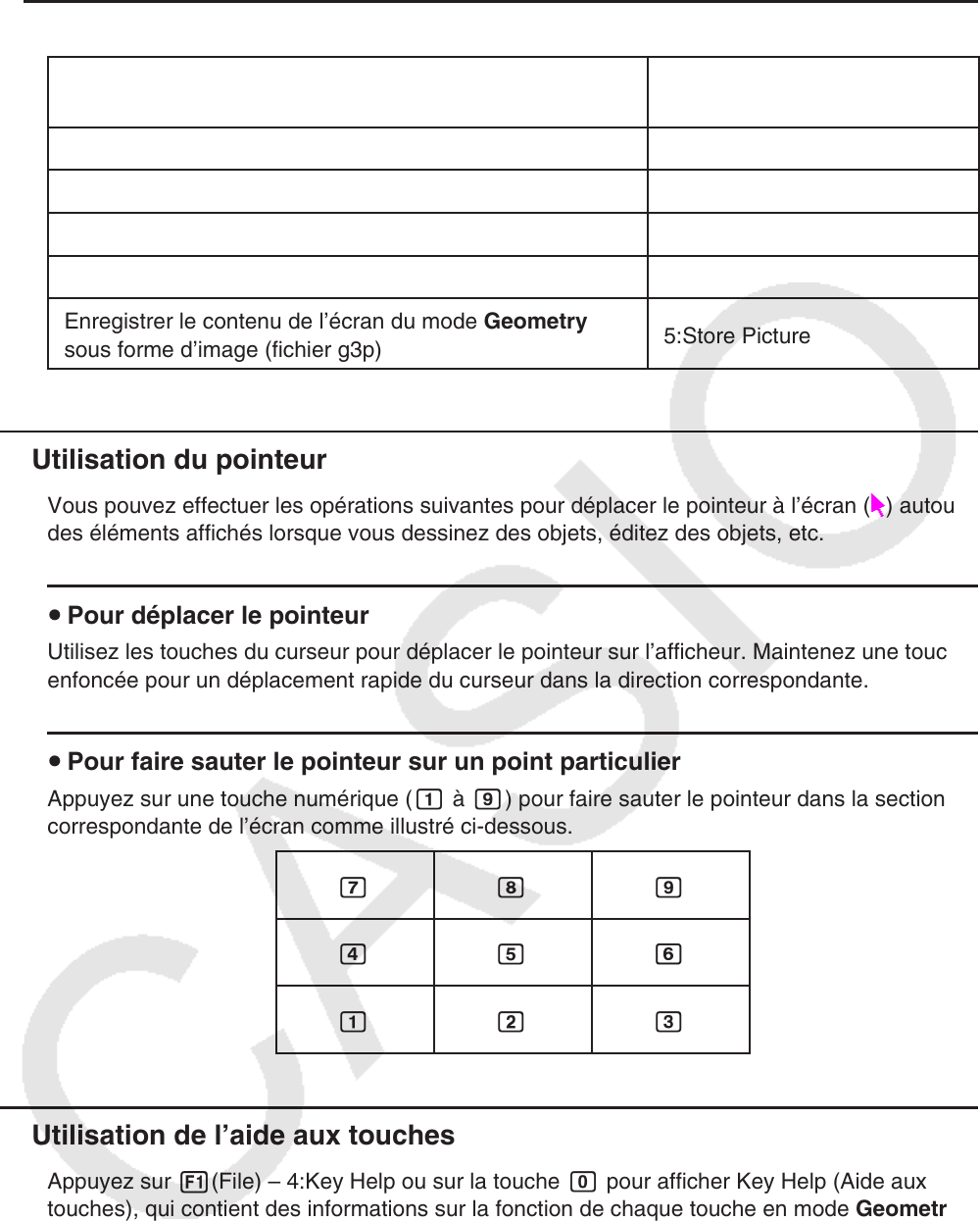 touches), qui contient des informations sur la fonction de chaque touche en mode Geometry .