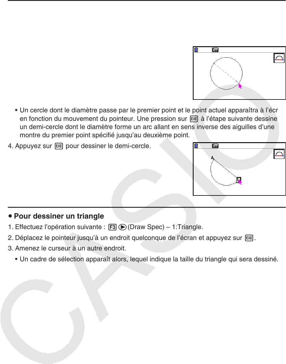 • Un cercle dont le diamètre passe par le premier point et le point actuel apparaîtra à l’écran