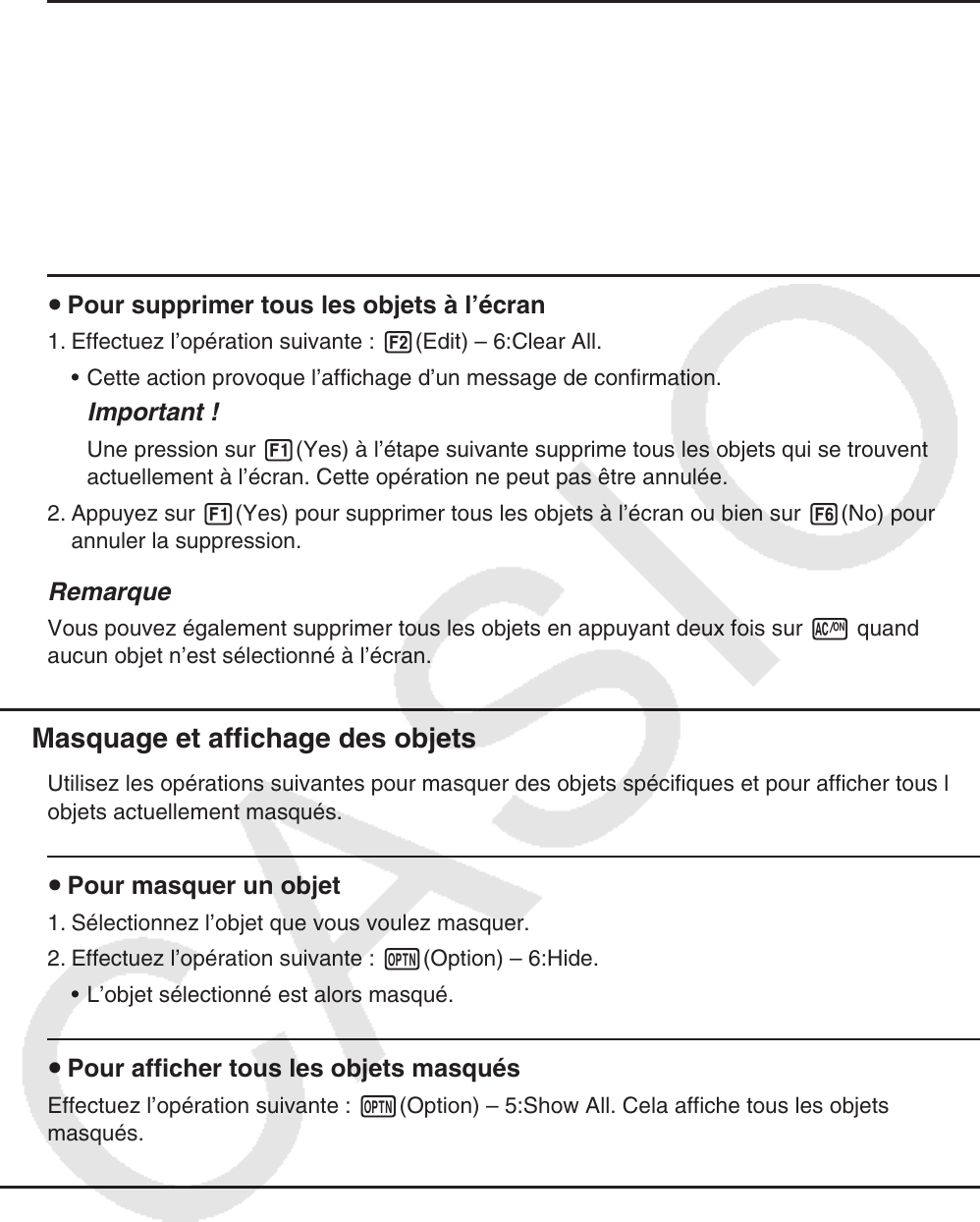 2. Appuyez sur 1(Yes) pour supprimer tous les objets à l’écran ou bien sur 6(No) pour