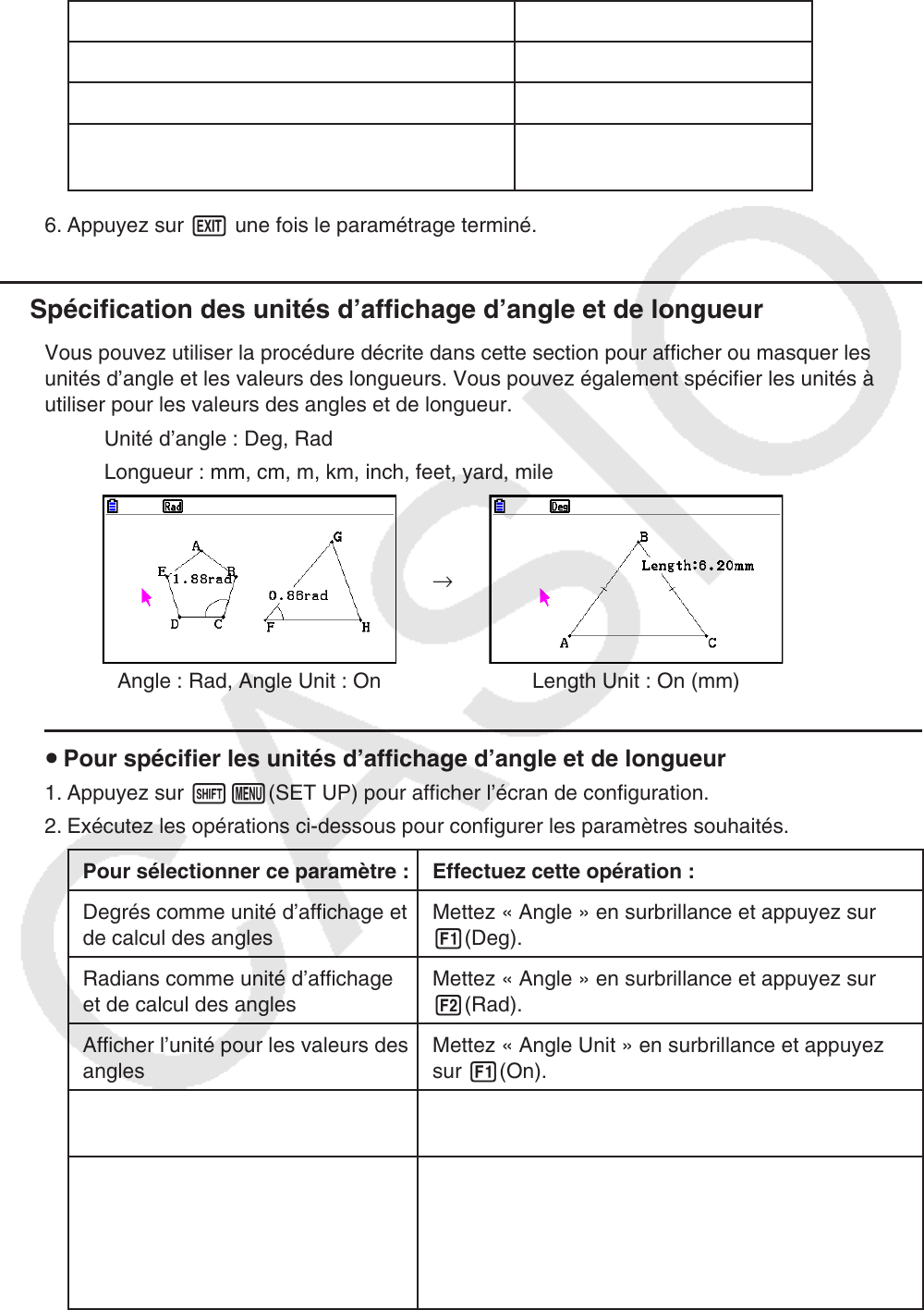 unités d’angle et les valeurs des longueurs. Vous pouvez également spécifier les unités à