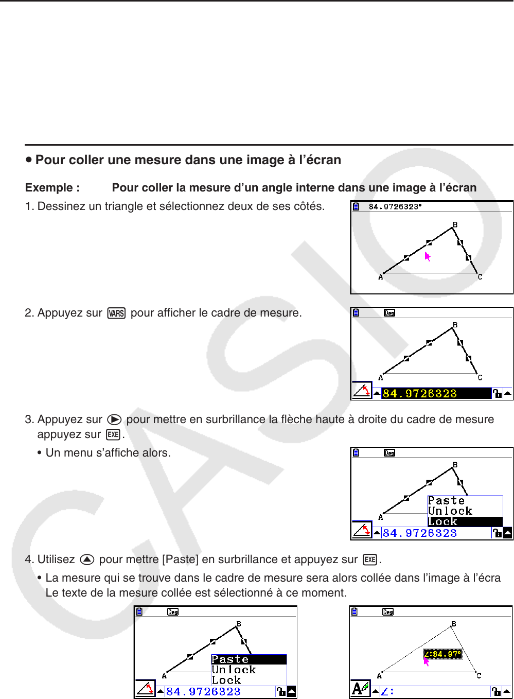 Exemple : Pour coller la mesure d’un angle interne dans une image à l’écran