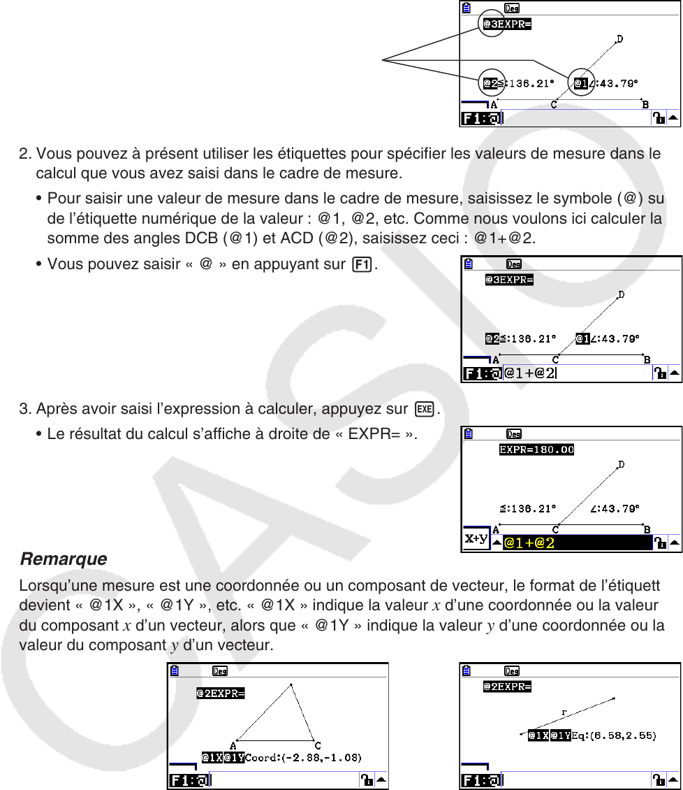 somme des angles DCB (@1) et ACD (@2), saisissez ceci : @1+@2.