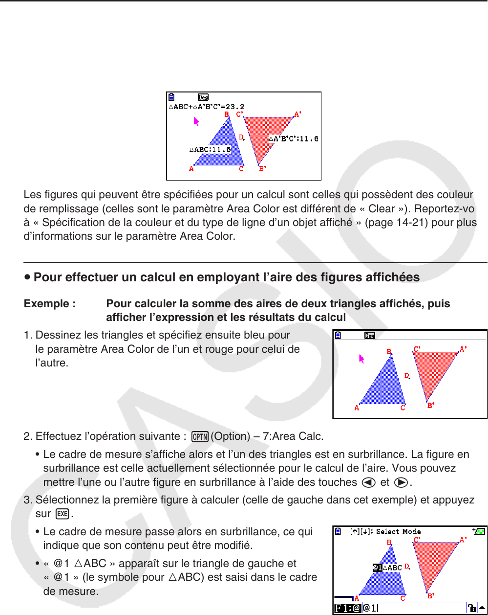 somme des aires du triangle ABC et du triangle A’B’C’, par exemple, peut être affiché comme