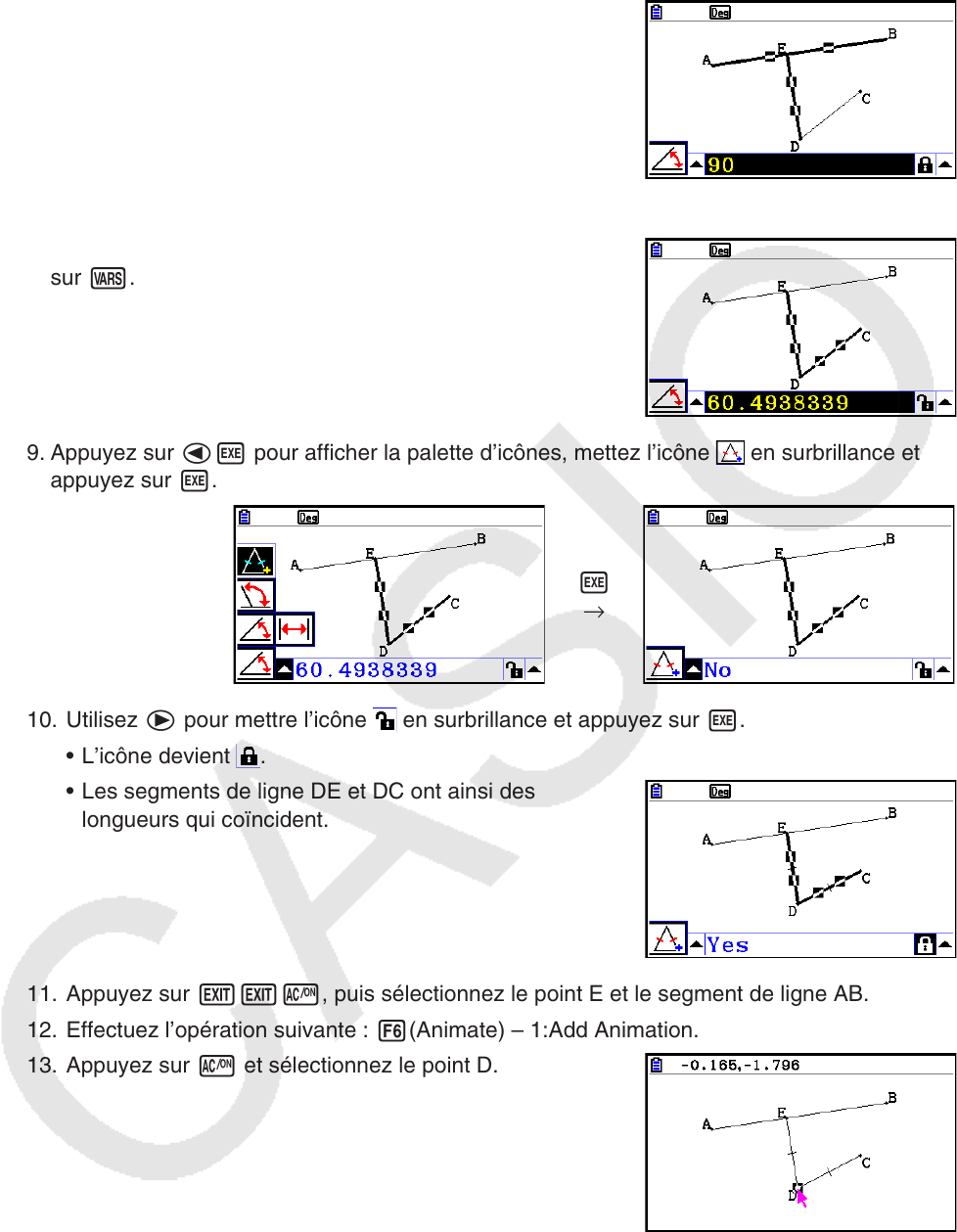 11. Appuyez sur JJo, puis sélectionnez le point E et le segment de ligne AB.