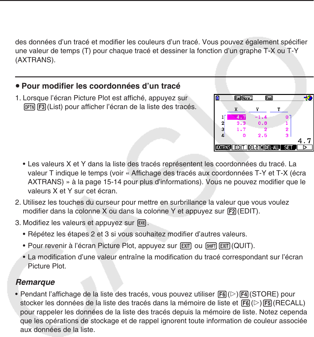 modifier dans la colonne X ou dans la colonne Y et appuyez sur 2(EDIT).