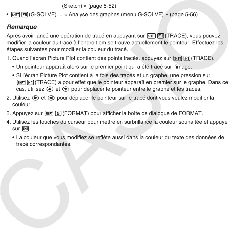 Sur l’écran Picture Plot, les éléments du menu de fonctions !1 à 5 sont les mêmes