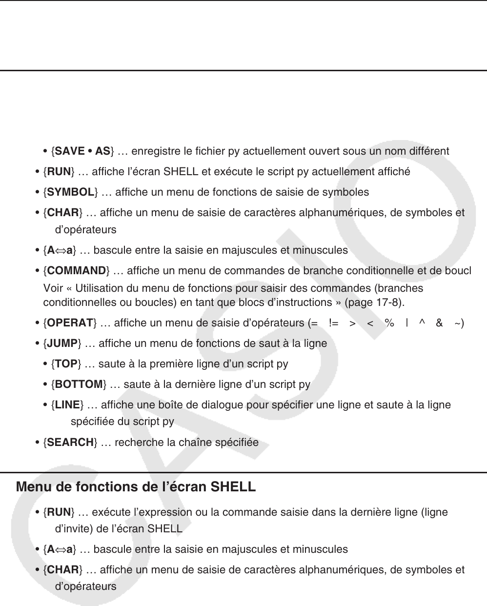 - Chapitre 17 Python (fx-CG50, fx-CG50 AU uniquement)- 1. Aperçu du mode Python