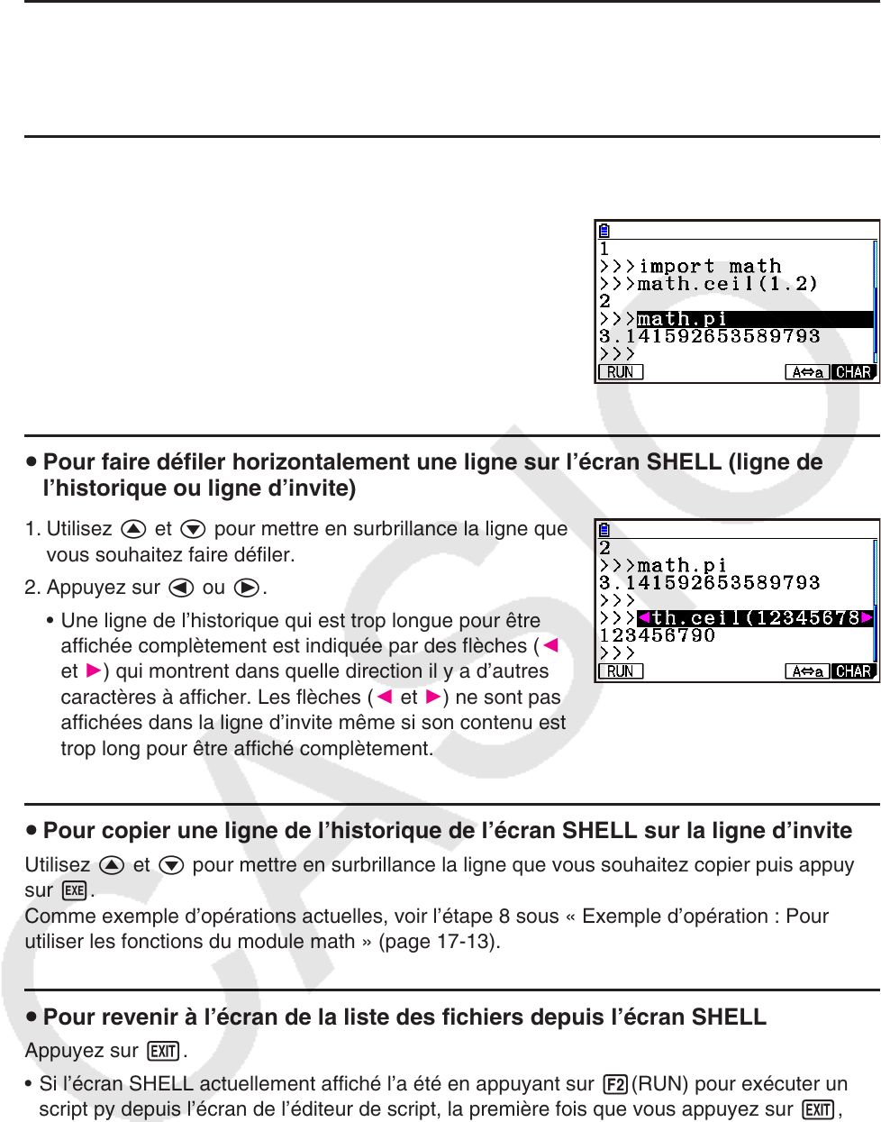 Si l’écran SHELL actuellement affiché l’a été en appuyant sur • 2(RUN) pour exécuter un